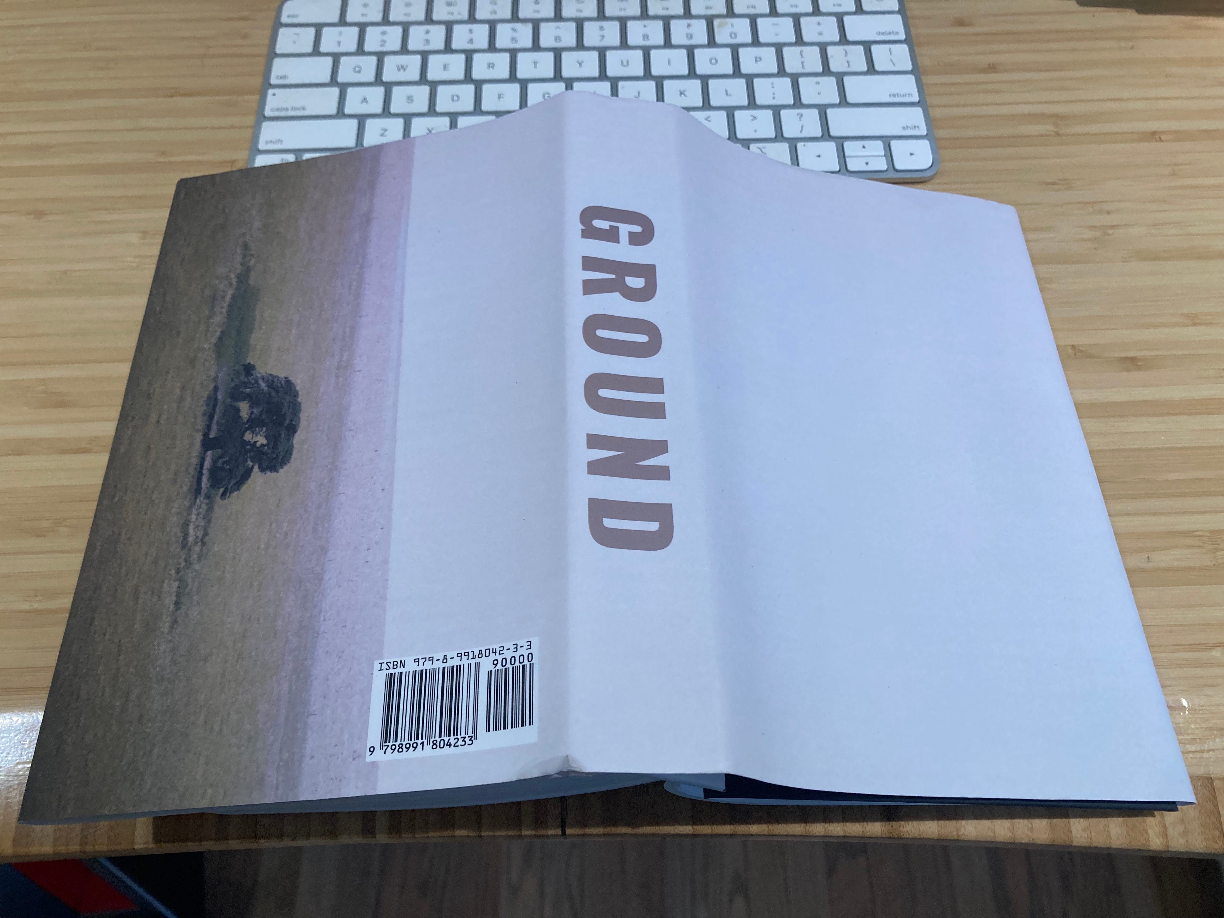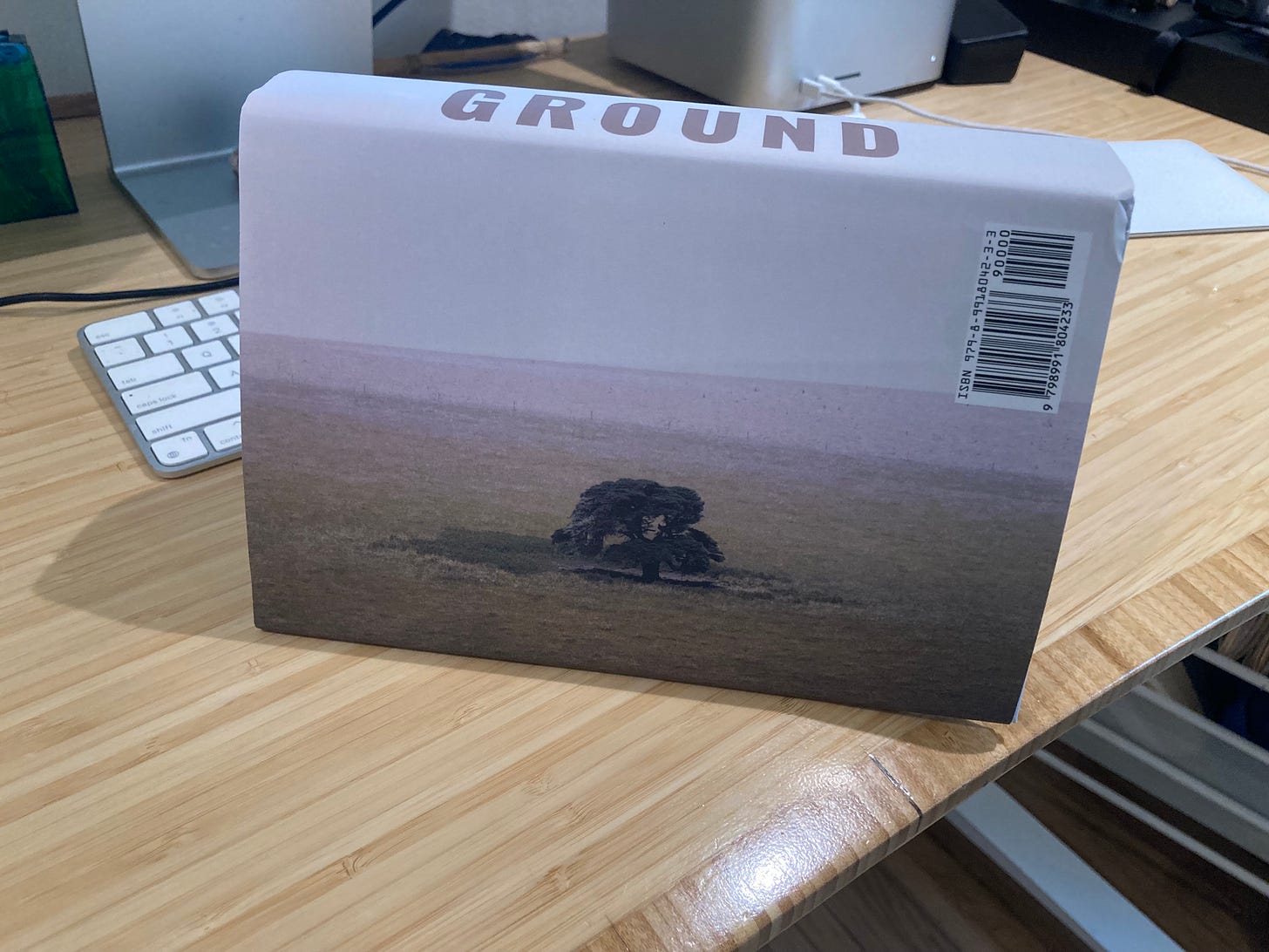 One point I'd make is that it appears in the images provided that spine background colour (i.e. that holds the text "GROUND") is a different colour to the front cover sky and top of the back cover. This, for me, creates a visual divide between the ground (i.e. tree image) and the sky.