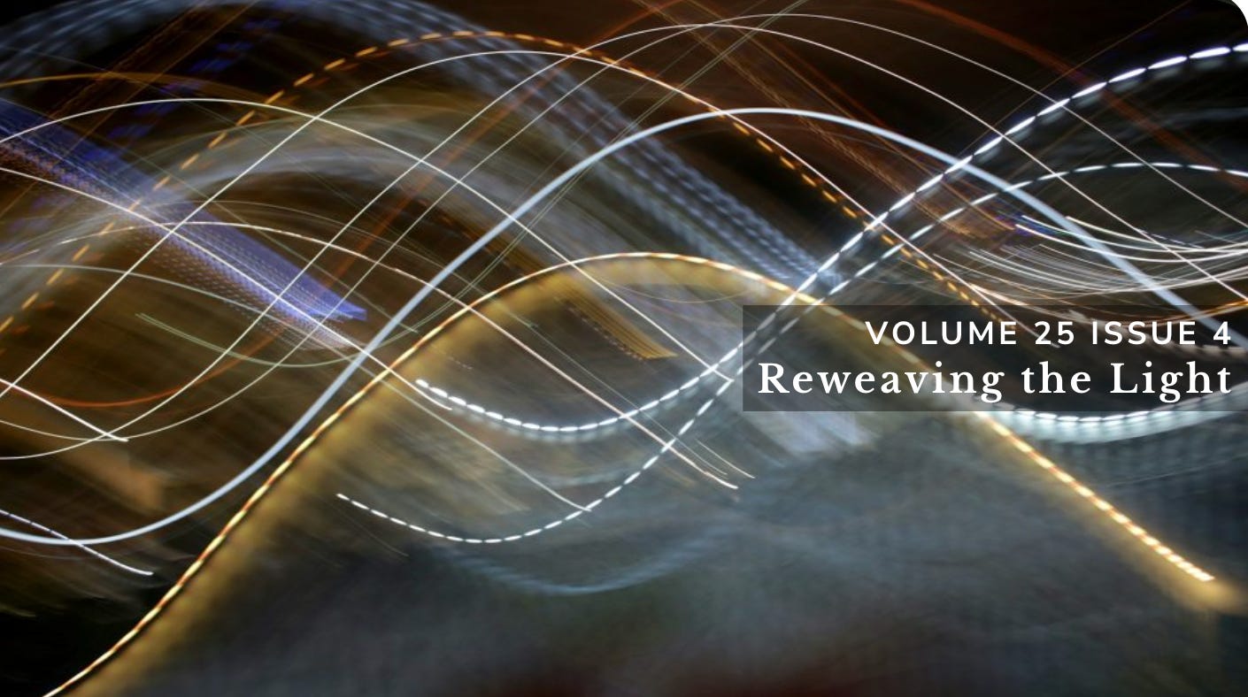 It has been a happiness to work with Rhonda Fabian on this piece. About the issue, Fabian says, “In a time of unraveling—personal, planetary, spiritual—'Reweaving the Light' explores how coherence returns not through control, but through deeper presence. These essays, images, and poems bear witness to rupture, while trusting the slow mending. Light here is not triumph over darkness, but the quiet radiance that emerges when we dare to feel, to stay, and to weave again.”