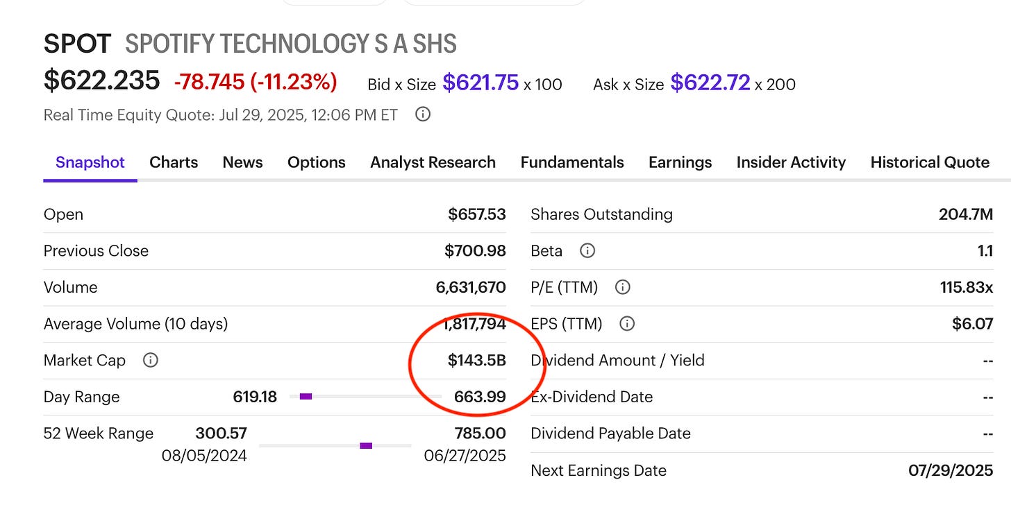 The top 10 wealthiest music labels have a combined market cap of about $95 billion. Spotify has a market cap of $145 billion. Which is to say that Spotify alone is worth more than the top 50 record labels combined.