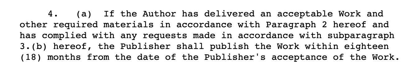 You hand them a manuscript in word format, with a folder of illustrations and diagrams, and they decide how the book looks and feels. And then the contracts say something like this: