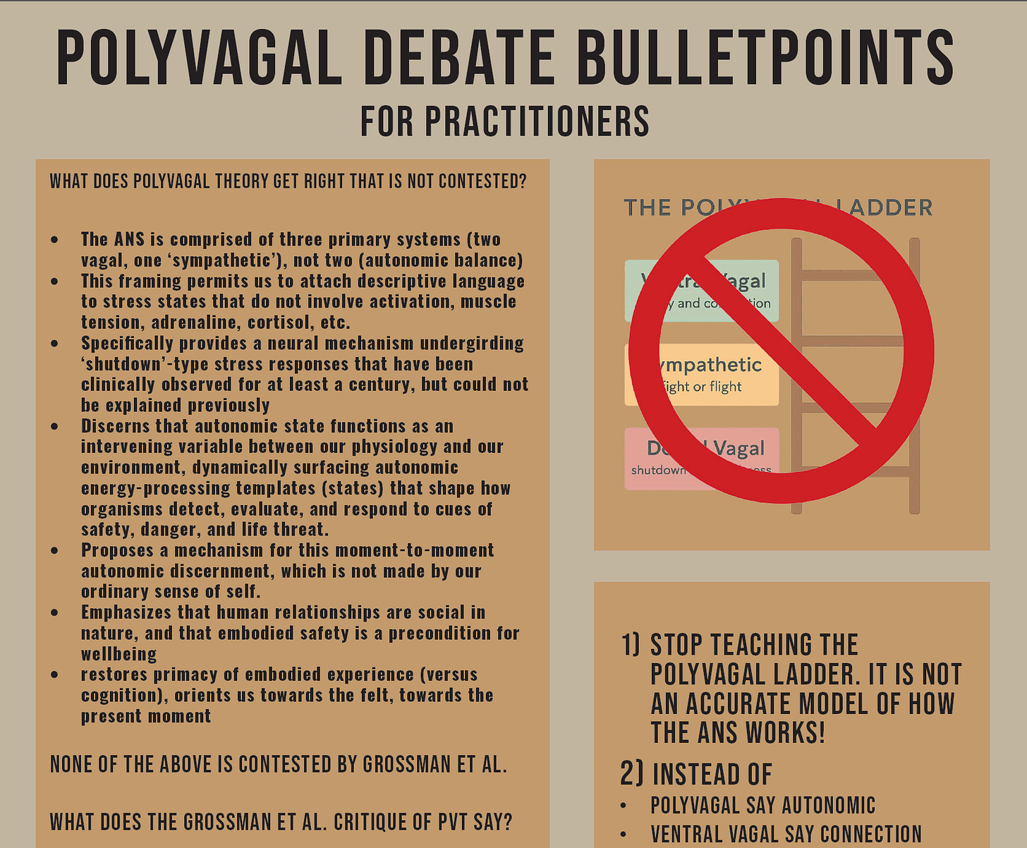 This is directly from the Grossman paper: “We base our arguments upon experimental studies of the vagus nerve and the autonomic nervous system in vertebrates carried out for the past six decades, and on well-established phylogenetic inferences of social evolution in vertebrates.” (from https://www.clinicalneuropsychiatry.org/download/why-the-polyvagal-theory-is-untenable-an-international-expert-evaluation-of-the-polyvagal-theory-and-commentary-upon-porges-s-w-2025-polyvagal-theory-current-status-clinical-applications-and/)