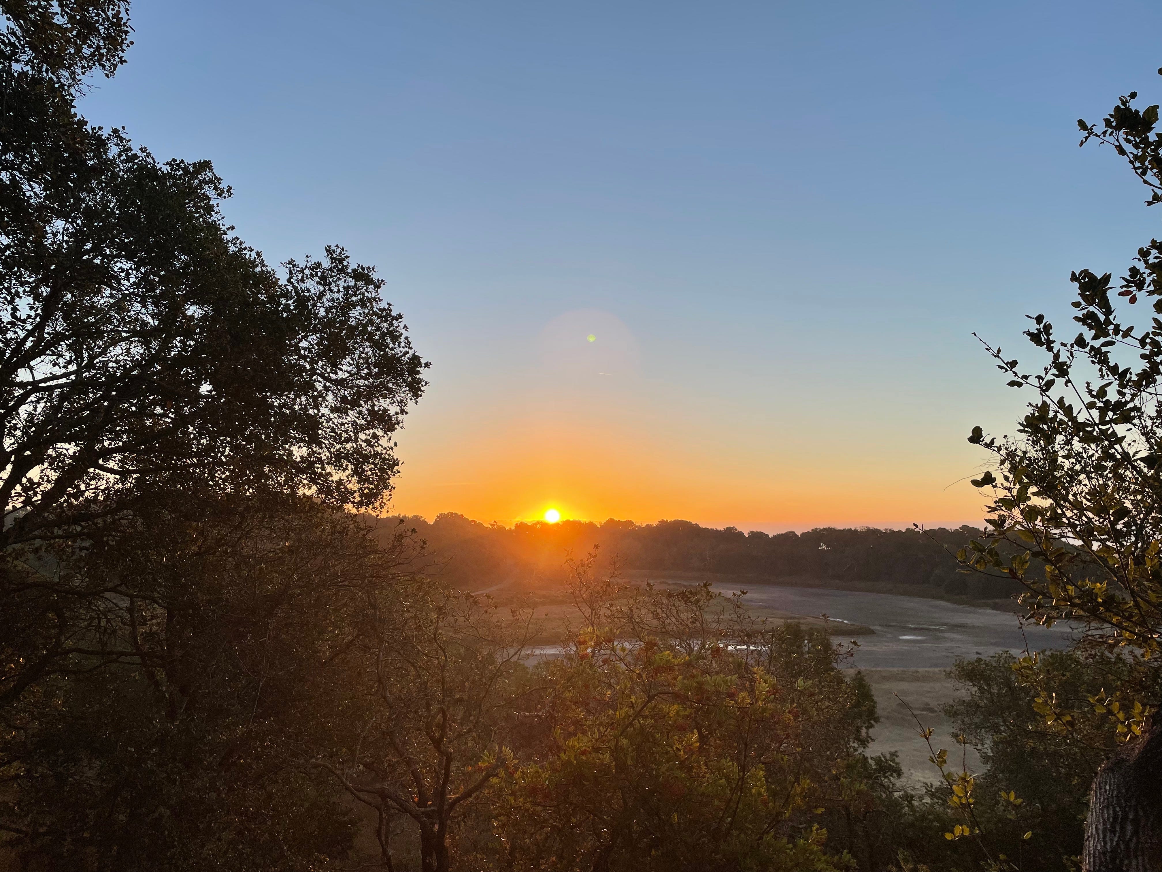 This morning I woke early to watch the sunrise. For a moment, before the orb rose above the horizon, the entire line of it hummed electric, almost like horizontal lightning. And then it rose. And I thought: