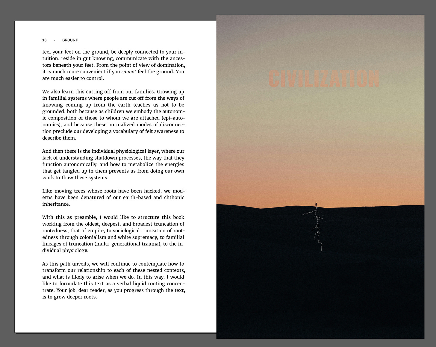 I have just finished writing and editing the second book in the Autonomics trilogy, GROUND: How Humanity Disconnected from the Living World, Why it Matters, and How to Fix It.